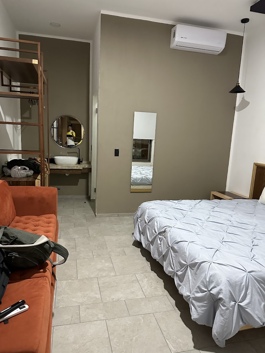 Un hotel bonito, las camas muy cómodas y la habitación en general limpia, movimos el sillón y debajo habían unos cuantos bichos, nos quedamos en la habitación A1, tal vez requiere más detalles el aseo debajo de los muebles, estaba fundido el foco del baño pero tampoco limitó su uso. La alberca y la ubicación está muy bien. Si lo recomiendo. El restaurante tenía alta demanda porque era puente, se entiende el tiempo de espera.